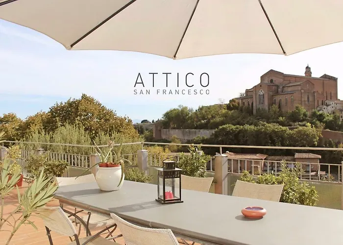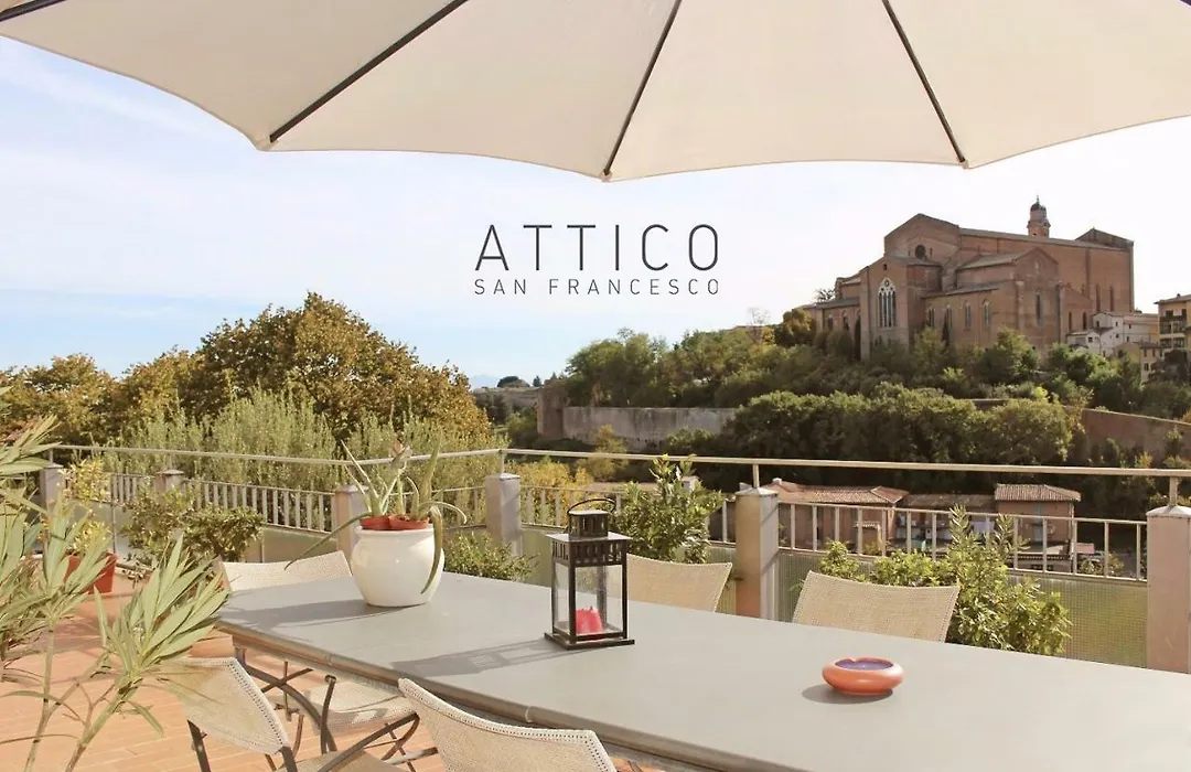 Attico San Francesco Apartamento está situado en Siena, a tan solo 11 minutos a pie de la Plaza del Campo, y cuenta con solárium. La Basilica of St. Bernardine of Siena se encuentra a tan solo 6 minutos a pie, mientras que la Fortezza Medicea también está a poca distancia del apartamento.